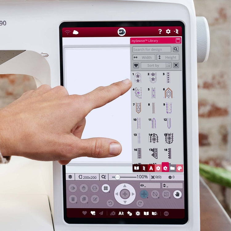 Adjust Stitch length, width, mirror image side-to-side and end-to-end. Stitch width safety.