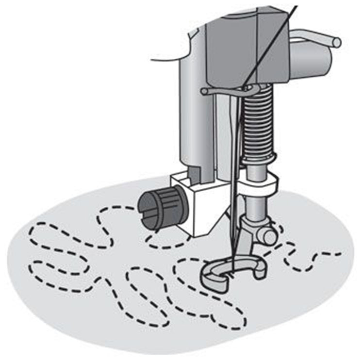 The Open Toe Free Motion Spring Foot gives clear visibility when doing free motion quilting or embroidery. Because of the open front, you can easily do stippling or follow a design in the fabric. The spring action keeps the fabric from lifting with the needle as the stitch is being formed which helps eliminate thread breakage with specialty or heavier threads. Be sure to use the appropriate needle for the thread you are using.