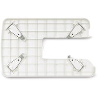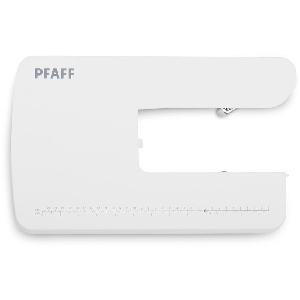 The extension table provides extra support for quilts and other large projects. The table is flat and has collapsible legs for easy storage, and it has a ruler for quick measurements while sewing.