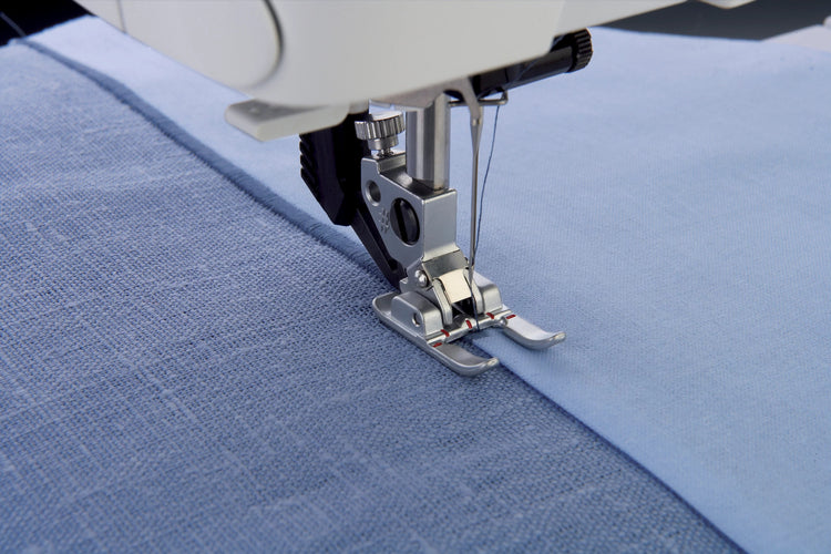 Perfect for appliqué and other sewing applications requiring an unobstructed view of the sewing area. Produce beautiful appliqué quickly and easily with this foot. Use with a pin-stitch or shell-edging program to achieve an appliqué with the look of hand-sewn overcasting