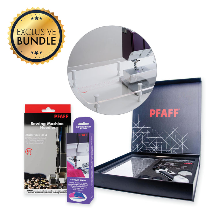 The PFAFF® performance icon™ Accessory Bundle includes an extension table, quilt binder presser foot, three packs of needles, and a complete quilting kit. Designed to improve control, accuracy, and ease of use, each component helps you achieve professional-quality results on every project. Bundle and save over $200 while elevating your quilting experience.