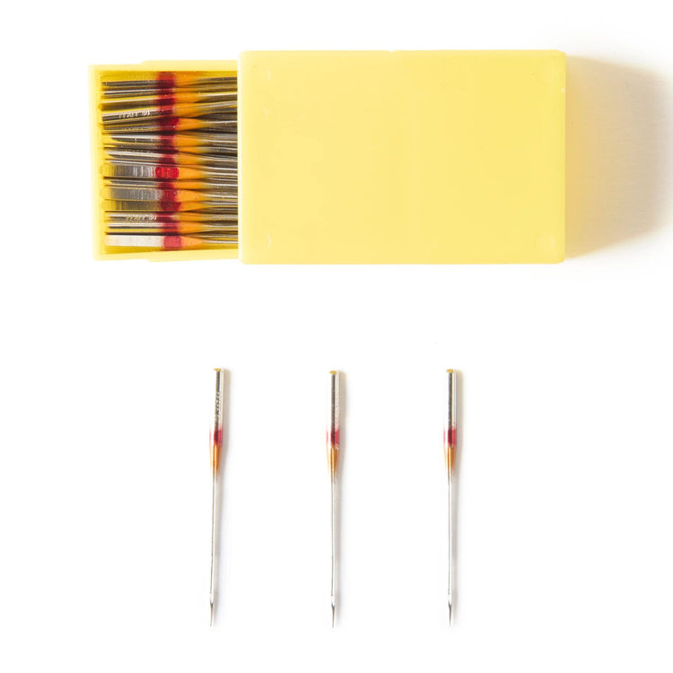 Easily slips through weave of light weight knits and woven fabric with rounded tip and tapered end. For optimum performance, change your needle every 6 - 8 hours of sewing and/or type of fabric.