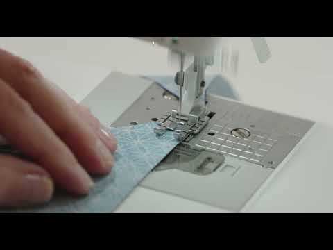 Accurately sew 1/4" seam allowances by lining the edge of the fabric with the metal guide on the side of the presser foot. Start and finish 1/4" from the edge of your fabric easily when using red markings on the foot as a guide.