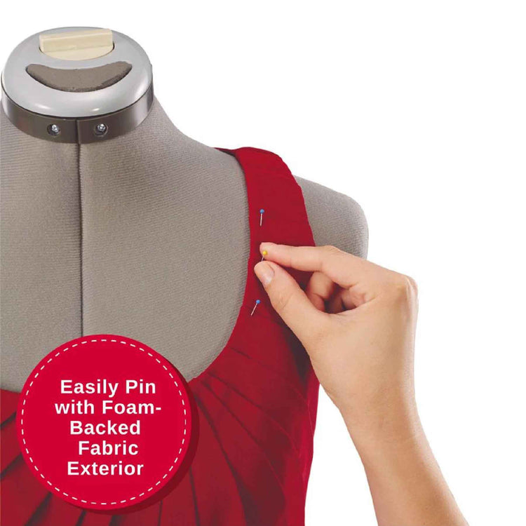 This dress form mannequin is perfect for precision sewing or even a display piece! The dress form's 12 dials allow you to find the perfect fit in seconds. The Foam-Backed Fabric Exterior allows you to easily pin dresses, skirts, tops and patterns. The easy tool-free Height Adjustment lets you customize the dress form to your height in a snap. Enjoy absolute accuracy with the easy-basting Hem Gauge.