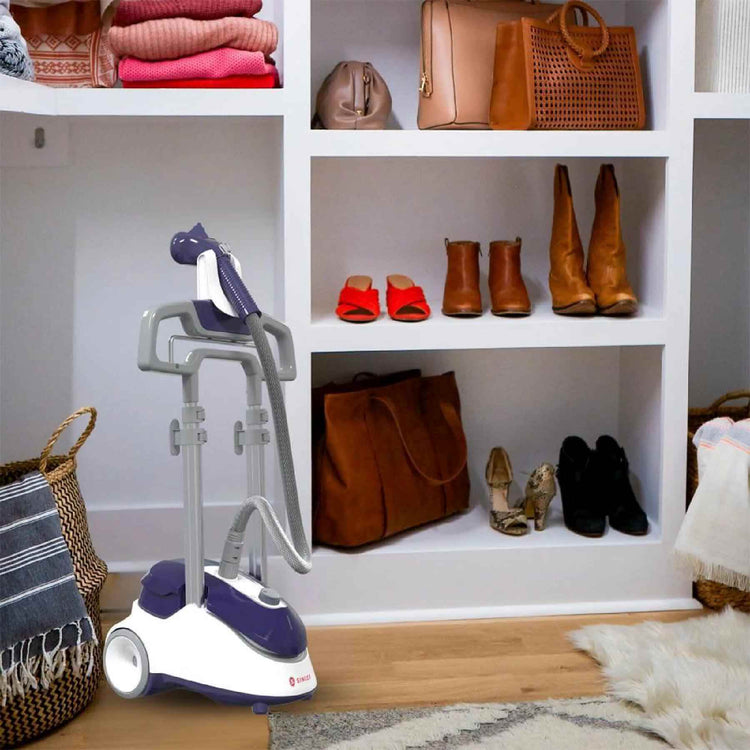 Los postes telescópicos ajustables añaden estabilidad adicional y se pliegan fácilmente para un almacenamiento cómodo. La capacidad del depósito de 2,5 l le permite utilizar el vapor durante más tiempo sin necesidad de rellenarlo. La seguridad es una prioridad máxima con el apagado automático una vez que el depósito de agua está vacío. SINGER® conoce el cuidado de los tejidos y la importancia de obtener resultados profesionales y sin arrugas. Por eso el vaporizador de prendas SINGER® SteamWorks™ Pro 2.0 1500W ha sido diseñado pensando en usted y en sus proyectos de cuidado de tejidos.