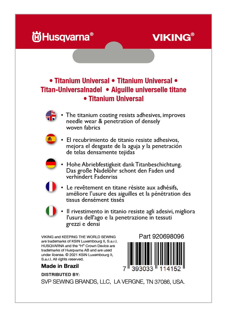 HUSQVARNA® VIKING® Universal Agujas de Titanio Tamaño 90/14 Paquete de 5