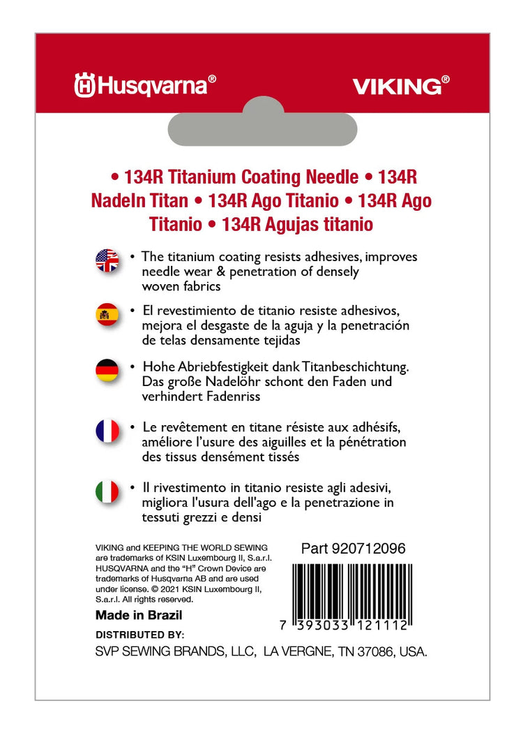 HUSQVARNA® VIKING® 134R Agujas de Titanio Tamaño 110/18 Paquete de 10