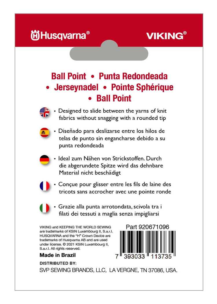 HUSQVARNA® VIKING® Agujas Punta Bola Tamaño 90/14 Paquete de 5