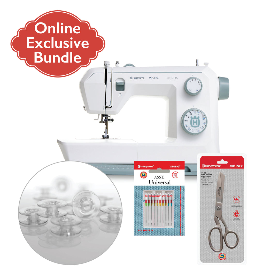Diseñada pensando en los costureros principiantes, esta exclusiva colección incluye herramientas de eficacia probada y la máquina de coser HUSQVARNA® VIKING® ONYX™ 15, repleta de funciones, que le permitirán alcanzar el éxito desde el principio.