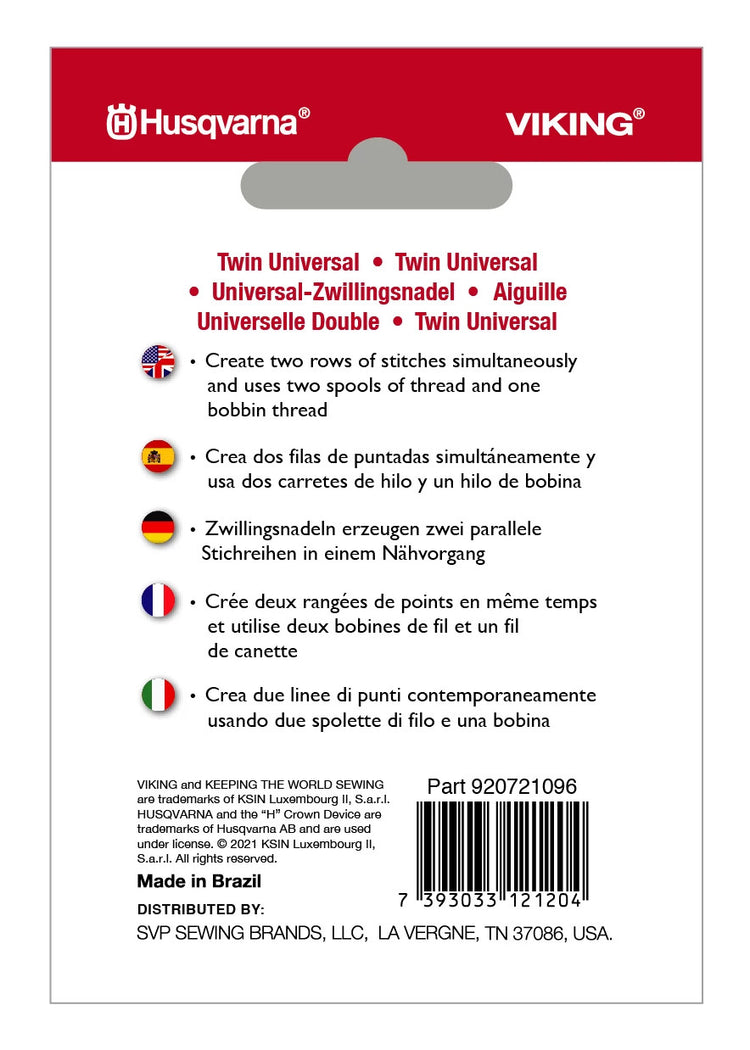 HUSQVARNA® VIKING® Aguja Doble Universal 1.6mm Tamaño 70/10