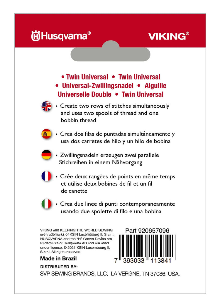 HUSQVARNA® VIKING® Aguja Doble Universal 3.0mm Tamaño 90/14