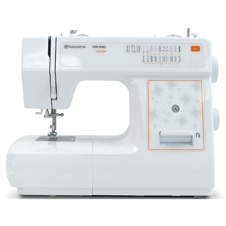 La máquina de coser HUSQVARNA VIKING® H|CLASS™ E10 es fácil de usar y viene con una gran variedad de funciones y accesorios para empezar. La selección de puntadas le permite expresar su creatividad ya sea creando ropa, decoración para el hogar o regalos para amigos y familiares. Esta máquina fiable y fácil de enhebrar le proporcionará años de placer en la costura.