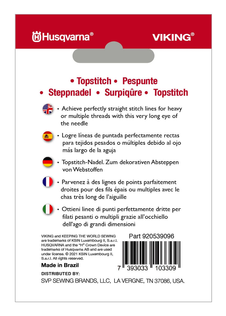 HUSQVARNA® VIKING® Topstitch Agujas Tamaño 90/14 Paquete de 5