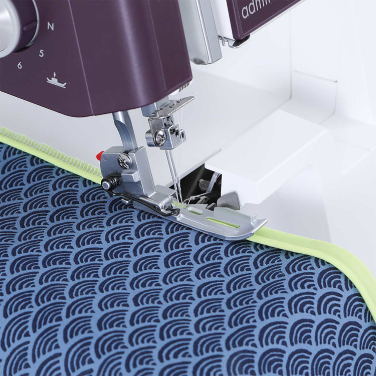 4. Cosa con puntada recta, longitud 2,5. La ranura de la parte inferior del pie guiará el ribete mientras cose.