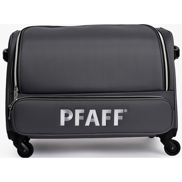 La bolsa pequeña con ruedas PFAFF® transporta con seguridad tanto la máquina como los accesorios con un cómodo almacenamiento y un elegante diseño.