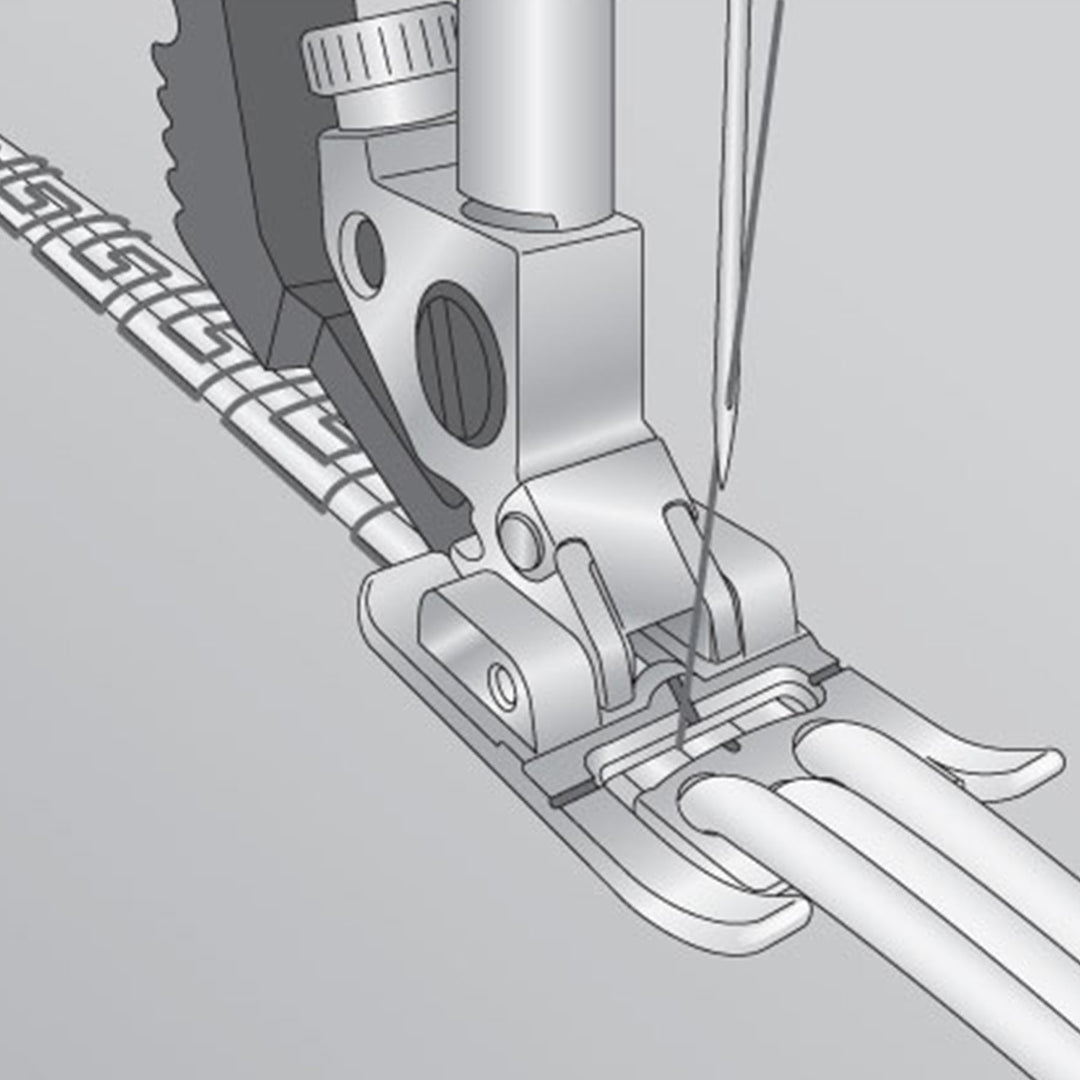 5. Coloque el pie prénsatelas de tres agujeros.