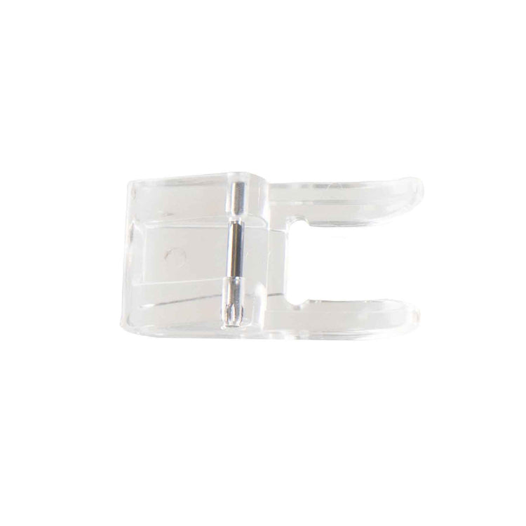 Proporciona un aspecto limpio y profesional. Se utiliza comúnmente en los bordes de prendas como escotes, dobladillos y bolsillos o en los bordes de otros proyectos como bolsos, almohadas y cortinas. Utilice el borde interior del prensatelas de puntera abierta como guía de pespunte fácil de ver. Coloque el borde acabado o la línea de costura bajo el prensatelas de modo que la punta derecha del pie descanse sobre el borde acabado o la línea de costura.