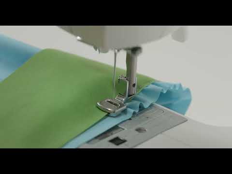 El prensatelas para fruncidos se utiliza para formar fruncidos suaves en la tela. Frunza tela de peso ligero a medio o utilice el accesorio para fruncir una sola capa de tela mientras la une a una capa que no esté fruncida. Se pueden fruncir cintas de seda o tiras de tela para crear un aspecto totalmente nuevo. Funciona mejor con tejidos suaves.