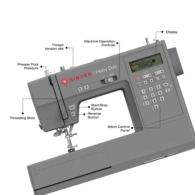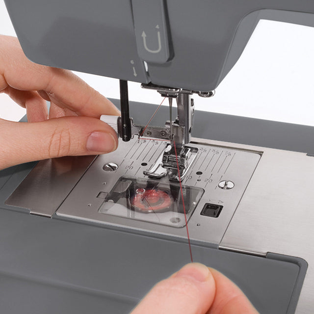 La máquina de coser computerizada Heavy Duty 6700C está diseñada pensando en sus proyectos de alta resistencia, desde tela vaquera hasta lona. Gracias al potente motor de la máquina, dispondrá de una velocidad de costura extra alta que le ahorrará tiempo. El espacio de la garganta (espacio de trabajo entre la aguja y la torre) es de 6,4" o 163 mm.