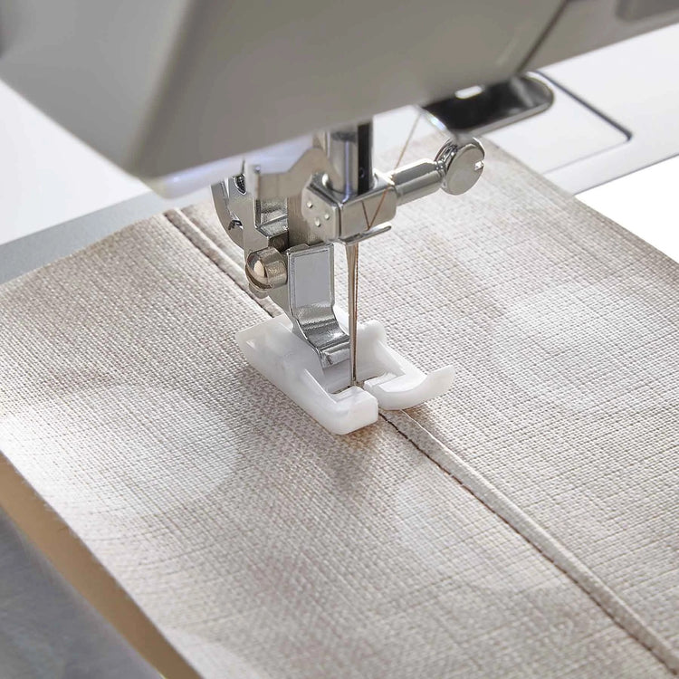- Longitud de puntada: Aumente la longitud de puntada de su máquina a una longitud media o media-larga cuando cosa cuero, plástico, hule y tejidos laminados. Una longitud de puntada más corta puede hacer que el tejido se perfore en la línea de costura y se rompa.