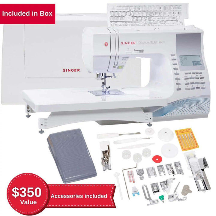 Mesa extensible incluida (+) - Se incluye una gran mesa extensible, que proporciona una superficie de costura nivelada para proyectos más grandes, como edredones.