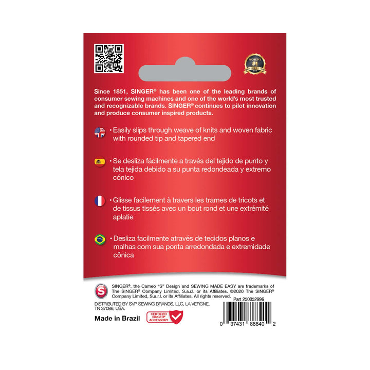 Las agujas universales se deslizan fácilmente a través de tejidos de punto y tela tejida con punta redondeada y extremo cónico. El tamaño 80/12 es el más adecuado para tejidos ligeros. El práctico paquete de 10 agujas te ayuda a mantenerte bien abastecido.
