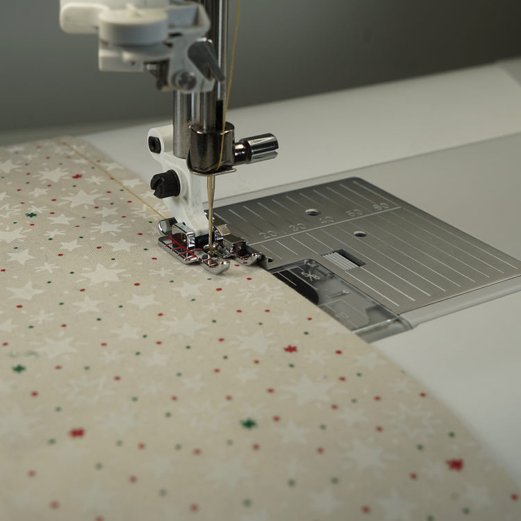 Note: Depending on the weight of your fabric and thread it may be necessary to adjust the needle position to achieve your desired seam allowance. Move the needle to the right to decrease the seam allowance and to the left to increase it. You can safely move the needle three steps in either direction, but not more.