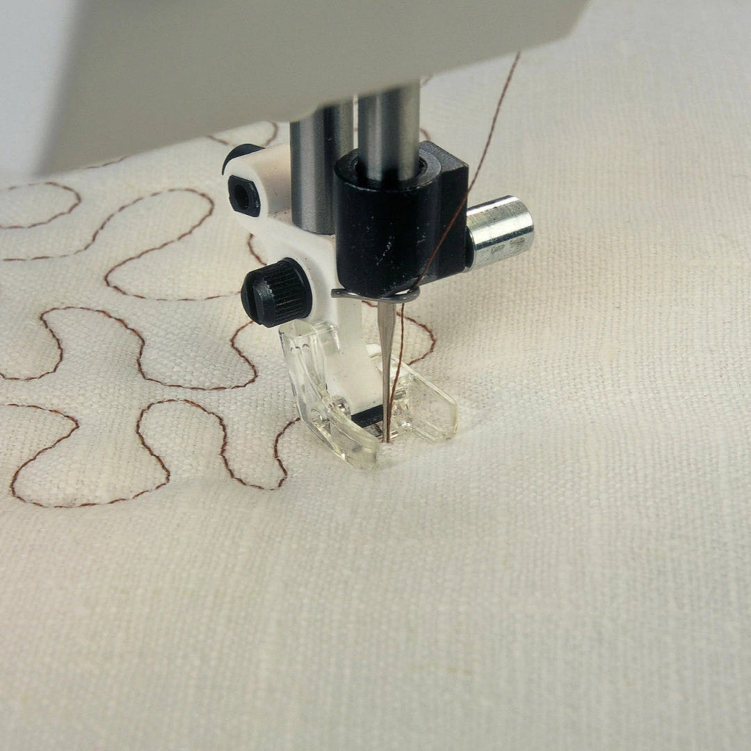 The Clear Open Toe Free-Motion Foot provides a perfect view for stitching free motion or when stippling around pieced or embroidered designs.