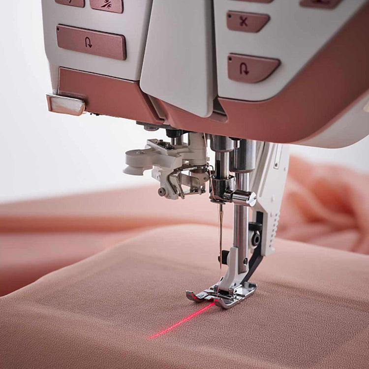 Project a laser guidance line directly on your fabric to easily line up your stitches. Move the laser-projected line guide left or right to easily align rows of decorative stitches, consistently space lines of quilting, and more.