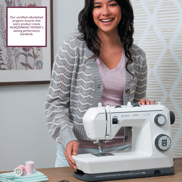 Our refurbished machines, including the HUSQVARNA VIKING ONYX 25, are backed by a limited warranty, ensuring your machine is protected against defects.