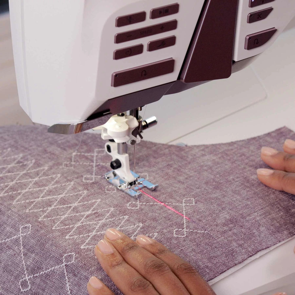 Project a laser guidance line directly on your fabric to easily line up your stitches. Move the laser projected line guide left or right to easily align lines of decorative stitches, consistently space lines of quilting, and more.