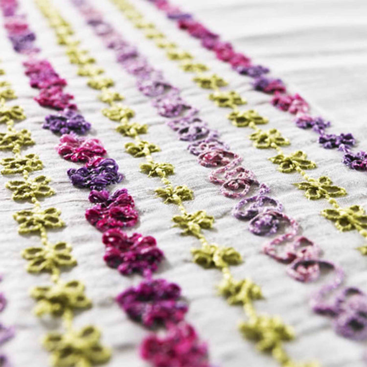 For less texture, use finer specialty threads and adjust the bobbin tension screw, if needed, so the thread pulls evenly and has a slight tension.