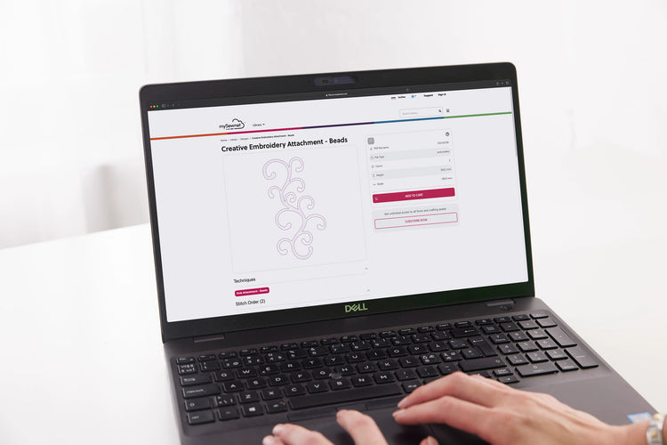 Connect all mySewnet™ enabled devices to communicate wirelessly between them while transferring designs and information. A 30-day free trial of mySewnet subscription and Library is available for new subscribers.