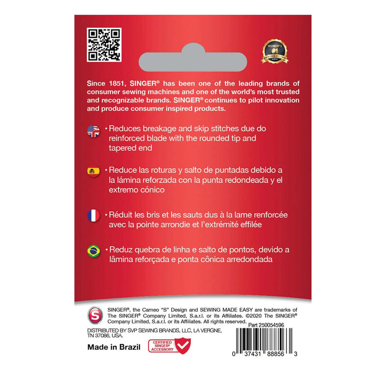Five needles are encased in a safe compact storage case with the sizing marked on its clear cover. Needles are for machine use, and can be used in Singer, Brother, Kenmore and other quality sewing machines.