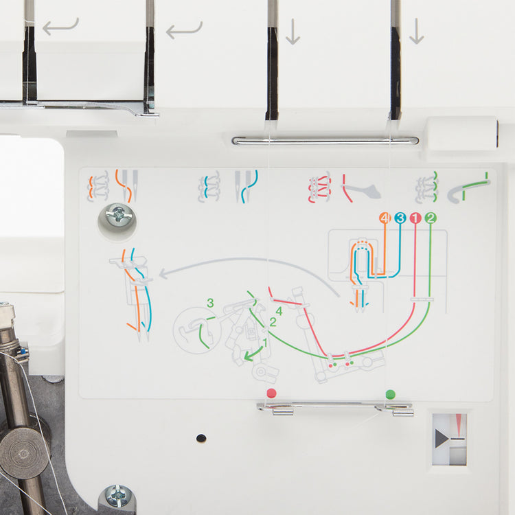Quick and Easy Threading: Easy-to-follow color-coded threading guides.