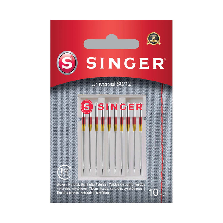 Universal Needles easily slip through weave of knits and woven fabric with rounded tip and tapered end. Size 80/12 is best suited for light weight fabrics. Convenience pack of 10 needles helps keep you well stocked.